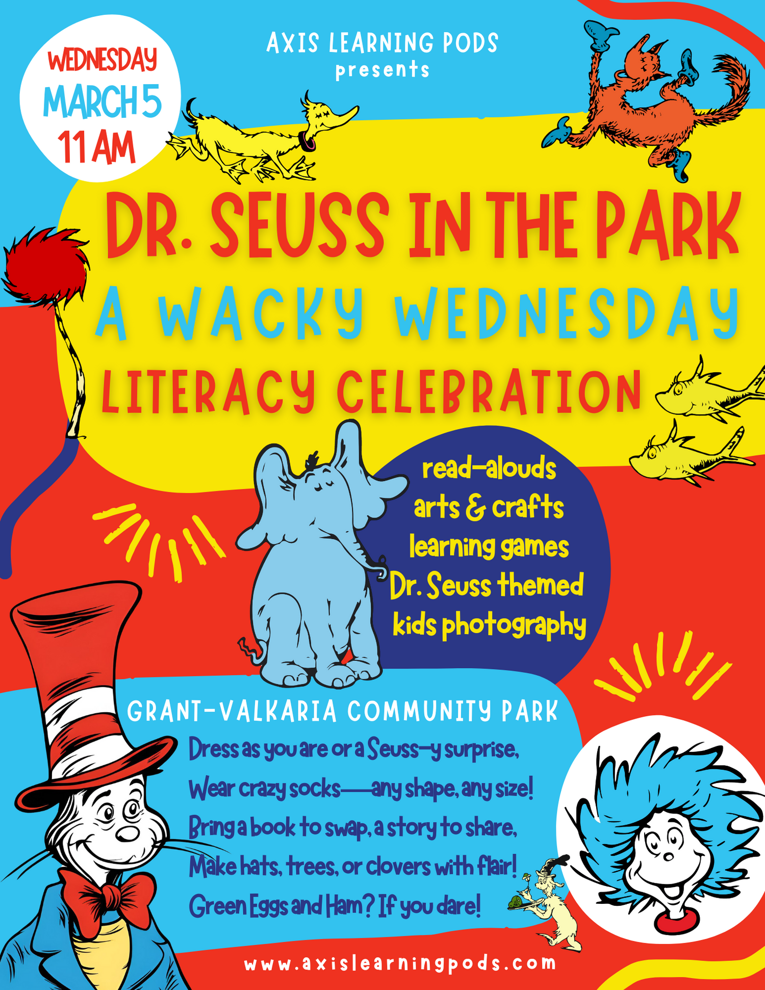 Join us for our upcoming 'Dr. Seuss in the Park' event on March 5th at Grant-Valkaria Community Park. Enjoy storytelling, arts & crafts, and more!